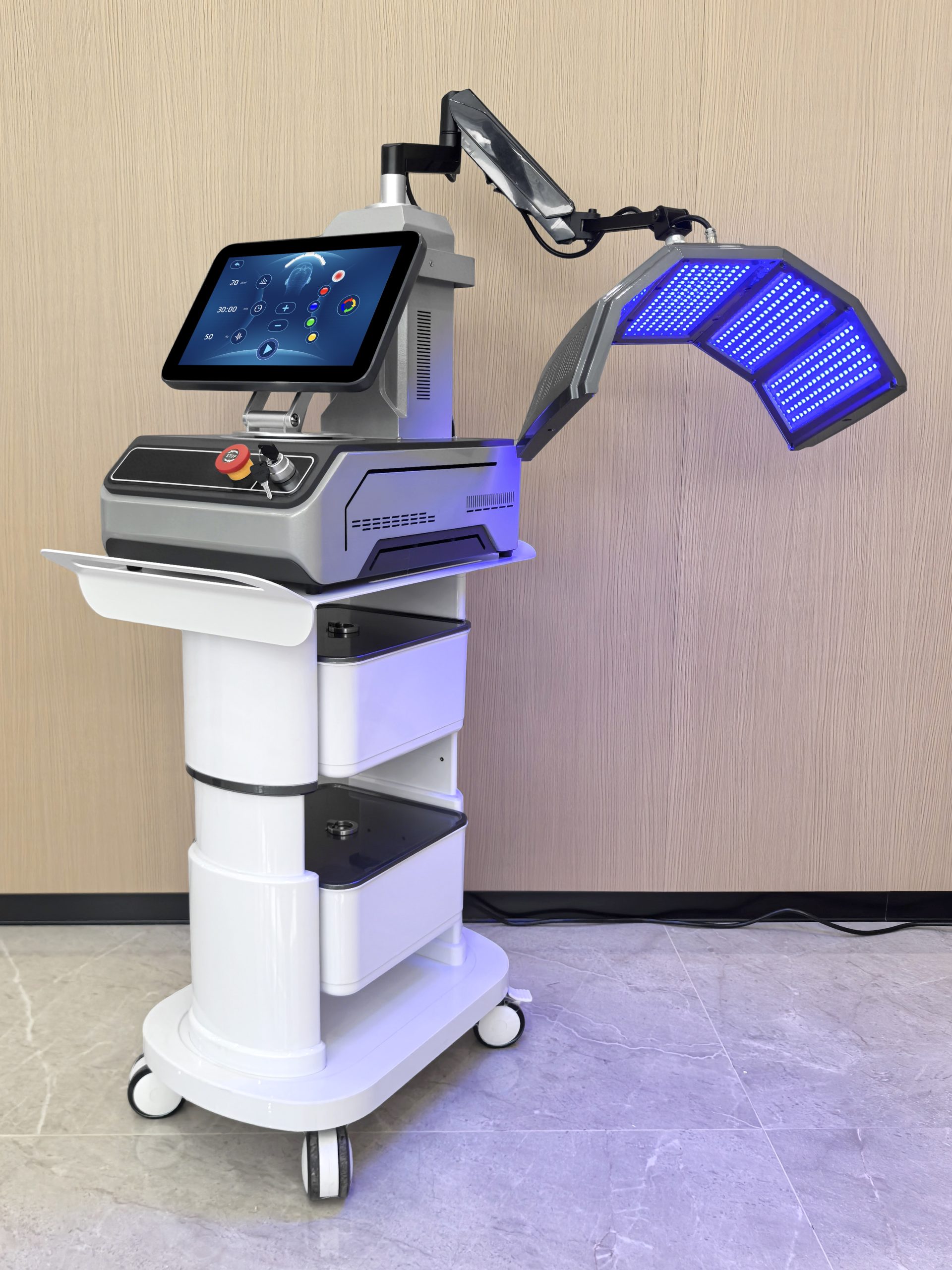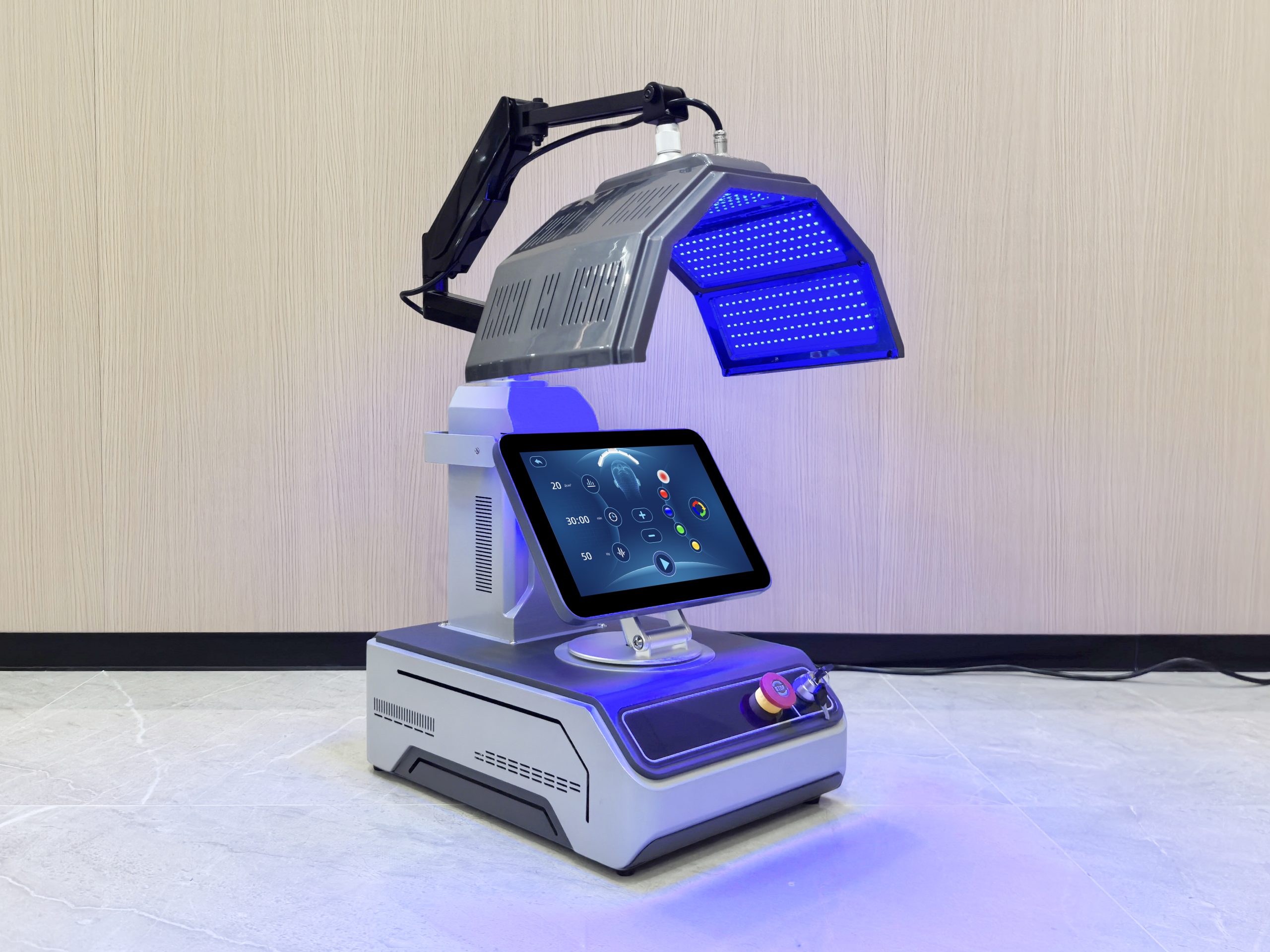 JK06 Max NIR-PDT — это современный эстетический аппарат, объединяющий 5 спектров видимого света и мощный инфракрасный канал (850 нм). Устройство использует принципы фотодинамической терапии (PDT) для решения широкого круга задач: от борьбы с акне до глубокого омоложения и восстановления кожи.